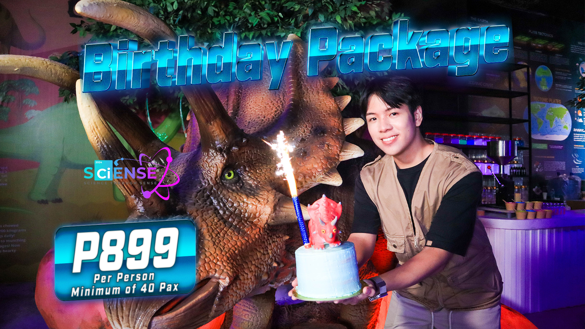 Celebrate your birthday at SciENSE! For just ₱899 per person with a minimum of 40 guests, enjoy a FREE party venue and celebrate alongside towering dinosaurs for a truly unforgettable experience. Book now and make your big day roar-some!